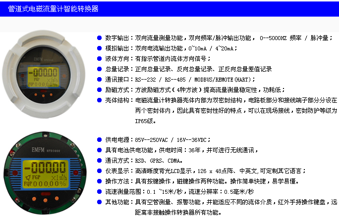 KM-LDE電磁流量計是我公司采用國內外先進技術研制開發的全智能型流量計,其全中文電磁轉換器內核采用高速中央處理器。計算速度非常快,精度高,測量性能可靠。轉換器電路設計采用國際新技術,在滿足現場顯示的同時,還可以輸出4-20mA電流信號供記錄、調節和控制用,現已廣泛地應用于化工、環保、冶金、醫藥、造紙、給排水等工業技術和管理部門。