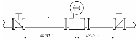 工業(yè)鹽水流量計(jì)的安裝質(zhì)量對(duì)其測(cè)量結(jié)果的影響較大,因此在安裝時(shí)需要注意幾個(gè)問(wèn)題。*先,工業(yè)鹽水流量計(jì)直管段的選擇在配管時(shí)一定要按照要求進(jìn)行選擇,一般選擇流量計(jì)通徑與工藝管道通徑相同,即可滿足工程需要,而且安裝方便、壓力損失小,流量計(jì)直管段上游側(cè)的長(zhǎng)度不少于5倍工藝管道直徑,下游側(cè)的長(zhǎng)度不少于3倍工藝管道直徑(圖2)。但在流速太慢而又要求精度較高或需要變徑的應(yīng)用場(chǎng)合,可選擇通徑小于工藝管道通徑的流量計(jì),以提高測(cè)量精度,此時(shí)流量計(jì)上、下游必須加裝異徑管,且進(jìn)口異徑管上游側(cè)應(yīng)有長(zhǎng)于10倍工藝管道直徑的直管段,下游側(cè)應(yīng)有長(zhǎng)于5倍工藝管道直徑的直管段(圖3)。
