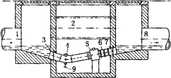 由于大口徑管道在多數(shù)場合下是埋在地下的,因此大口徑傳感器在安裝前應(yīng)做好水泥地坑。圖6-19所示是在給排水系統(tǒng)中常見的安裝形式。水泥地坑應(yīng)有足夠的活動(dòng)空間,側(cè)壁埋有敷設(shè)電纜的鋼管,上有蓋板防止雨淋,下有泄水管以免坑內(nèi)積水而使傳感器侵水。為了拆裝方便,傳感器應(yīng)放在墊腳上,且在下游側(cè)裝有活絡(luò)的伸縮管。圖6-20是測量鹽水流量計(jì)在地下水泥管污水排放系統(tǒng)中的安裝實(shí)例。