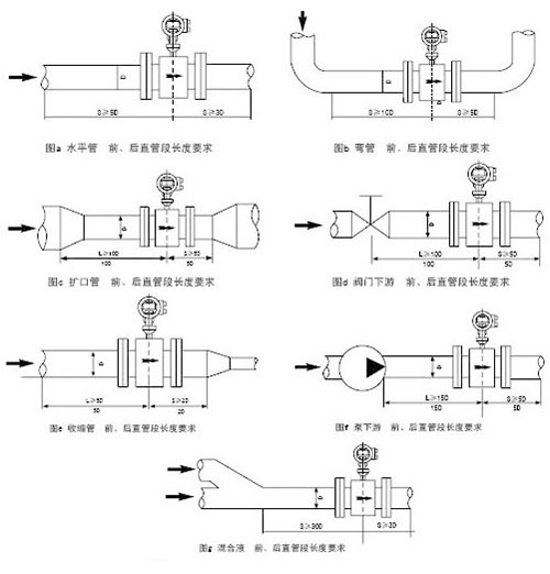 2.異徑管需滿足錐度要求。供水流量計的入口與出口的直線管段有長度要求,傳感器前后加接的異徑管,若要視為直管段的一部分,應符合產品關于傳感器前后管段漸擴或漸縮的圓錐角小于15°的要求。因此這種做法必須進行異徑管中心圓錐角計算,如上述DN100供水流量計入口與出口處,依據《給水排水標準圖集》加工制作的DN150×100的異徑管,其中心圓錐角計算后為11.74°<15°。