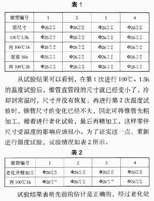 由于錐管老化試驗的溫度為100℃,而產品的使用溫度只有70℃,因此按改進的工藝加工錐管,必定能滿足產品的設計要求。