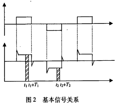 智能濃硫酸電磁流量計一般都采用工頻交流電源供電,其電源電壓的幅值和頻率的變化都會給智能濃硫酸電磁流量計帶來電源性干擾噪聲。對電源電壓的幅值變化,因采用多級集成穩壓,一般而言電源電壓的幅值變化對電磁流量的測量精度影響不大。當電源電壓的頻率波動時,雖然其波動范圍有限,但對智能濃硫酸電磁流量計測量精度影響較大。為了解決工頻干擾問題,實現對流體流速感應電勢e柚信號的準確測量,需利用以下基本關系:①勵磁周期為工頻周期的整數倍,即勵磁頻率為50/nHz(n為偶數);②正負勵磁下的同相位采樣。圖2是對應低頻矩形波勵磁形式下的典型電勢信號形式,按上述關系在一個勵磁周期下,若假設t。和t:點為工頻干擾的等效干擾點,且采樣寬度T=T1=T2,則e –ab的基本算式為:,