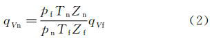 式中:qVf--工況條件下的體積流量,m3/h;qVn--標準狀態(tài)體積流量,m3/h;pf,pn--工作狀態(tài)、標準狀態(tài)流體絕對靜壓,MPa,pn=0.101325MPa;Tf,Tn--工況條件下、標準狀態(tài)流體熱力學溫度,K,Tn=293.15K;Zf,Zn--工況條件下、標準狀態(tài)氣體壓縮系數。
