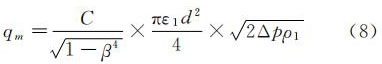 式中:C--流出系數;β--直徑比,β=d/D;D--管道內徑,m;d--工作條件下節(jié)流件的開孔直徑,m;ε1--節(jié)流件正端取壓口平面上的可膨脹性系數;ρ1--節(jié)流件正端取壓口平面上的流體密度,kg/m3。
