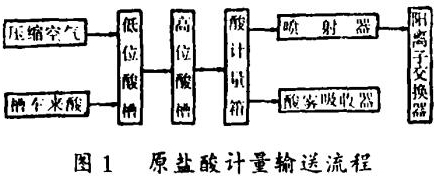 用陽離子交換樹脂制水要用酸作為再生劑。國內(nèi)電廠多選用鹽酸。鹽酸用傳統(tǒng)的箱式計量方法,使系統(tǒng)操作復(fù)雜,安全性能降低,還會嚴(yán)重污染環(huán)境。一種用智能電磁流量計代替鹽酸計量箱的負(fù)壓輸送鹽酸系統(tǒng)能克服上述缺點。該系統(tǒng)自運(yùn)行以來,使用情況良好,維護(hù)方便,受到工人們的歡迎。