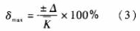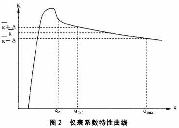 圖2顯示測量出電脈沖信號頻率F用平均儀表系數`K計算得到的Q值,在Qmin~Qmax范圍內的*大相對誤差為: