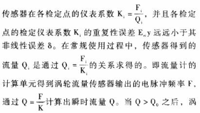 對于重復性很好而線性度較差的渦輪流量傳感器,要擴大其測量范圍或減小測量誤差,研究的核心問題是設計一-種便捷的使用方法,按照行鑒定規程利用原有檢定數據,使渦輪流量傳感器在具有很小重復性誤差的流量范圍內,都能得到很準確測量效果。