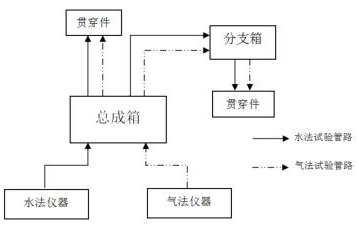 集中區域內的貫穿件試驗實施前,連接加壓管線時,可直接將加壓管線攜帶至分支箱放置處,用快速接頭連接分支箱與貫穿件加壓口,保持分支箱控制閥為開,利用總成箱控制閥作為充卸壓控制閥進行試驗。