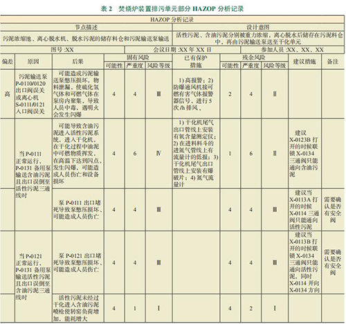 本次分析組的主要人員有:企業(yè)對夾式渦街流量計分析組以及焚燒爐裝置工藝工程師、設(shè)備工程師、儀表工程師、安全工程師和操作班組長。本次分析主要依據(jù)公司級相關(guān)標(biāo)準(zhǔn)和規(guī)范:《健康安全環(huán)境風(fēng)險標(biāo)準(zhǔn)》以及《危險與可操作性分析(對夾式渦街流量計)規(guī)范》,并于 1 個月內(nèi)對焚燒爐裝置進(jìn)行了分析,發(fā)現(xiàn)了部分重大的風(fēng)險和隱患。按建議措施對應(yīng)的風(fēng)險等級劃分,其中包括:Ⅳ級嚴(yán)重風(fēng)險(限期整改強(qiáng)制性措施);Ⅲ級高度風(fēng)險(限期整改強(qiáng)制性措施);Ⅱ級中度風(fēng)險(期望改進(jìn)推薦性措施);Ⅰ級可接受風(fēng)險(建議性措施)。本報告僅逐一列出部分較高或容易忽視的風(fēng)險(其他在對夾式渦街流量計分析的記錄中體現(xiàn))。評估發(fā)現(xiàn):本次分析評估共發(fā)現(xiàn)三級風(fēng)險 25 項(類),其中排污單元三級風(fēng)險 2 項(類)。其中,焚燒爐裝置排污單元分析記錄內(nèi)容如表 2 所示。