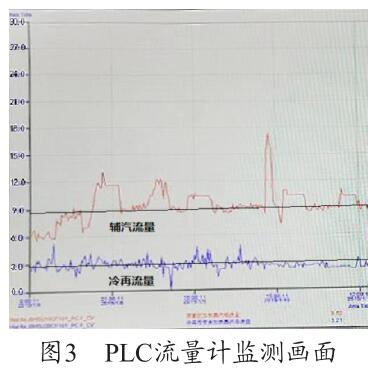 通過圖3可以看出,PLC 上輔汽測量用的脫硫煙氣流量計的量程設置為30t/h,現場設備量程實際為5t/h,兩者嚴重不符,因此測量值8.286t/h 為錯誤值,需要對程序進行修改。