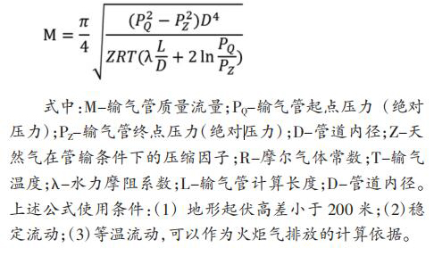 天津 LNG 設置兩座電磁流量計,單臺設計處理量 60t/h, 兩臺火炬并列運行,一用一備。自 LNG 儲罐及 BOG 系統來的超壓 BOG 經 PV 閥后進入火炬氣排放總管,經分液罐沉淀 BOG 中夾雜的液滴后進入火炬燃燒放空。 電池供電電磁流量計設置四級排放,具體設置如表 1。 2 火炬氣排放量計算方法根據水平輸氣管流量計算基本公式:
