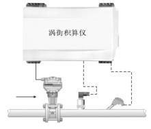 二是采用蒸汽流量積算儀,將渦街氣體流量計所測工況體積流量以及溫度和壓力變送器所測信號傳到蒸汽流量積算儀,如圖 2 所示由蒸汽流量積算儀進行補償運算。蒸汽流量積算儀內(nèi)置過熱蒸汽以及飽和蒸氣補償算法,可以輸出質(zhì)量流量、標準體積流量甚至熱量和比焓等。