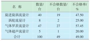 在2017年的工作基礎上,對2018年送檢的氣體流量計進行了抽查,并按不同類型進行了統計(表2)。