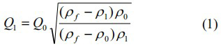 1. 流量計用于測量液體流量時,制造廠是用常溫下清潔的水作為校驗流體標尺分度,若被測流體的密度與水不同時,應對流量示值讀數進行換算。換算公式如下: