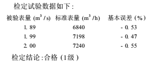 現(xiàn)以其中1臺(tái)開(kāi)封儀表廠生產(chǎn)的口徑1600mm的0.5級(jí)電磁流量計(jì)為例,分析超聲波流量計(jì)的檢定方法及其優(yōu)缺點(diǎn)。