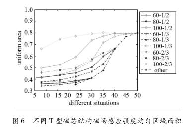 仿真實驗證明在有限的空間下,修改T磁芯的不同參數,可以增加流量計測量區域內部的磁場分布情況,也可以適當的調整流量計測量區域中的磁場強度與均勻度,根據生產測井中的實際工況,改變井水流量計的T磁芯參數獲得設計參數。